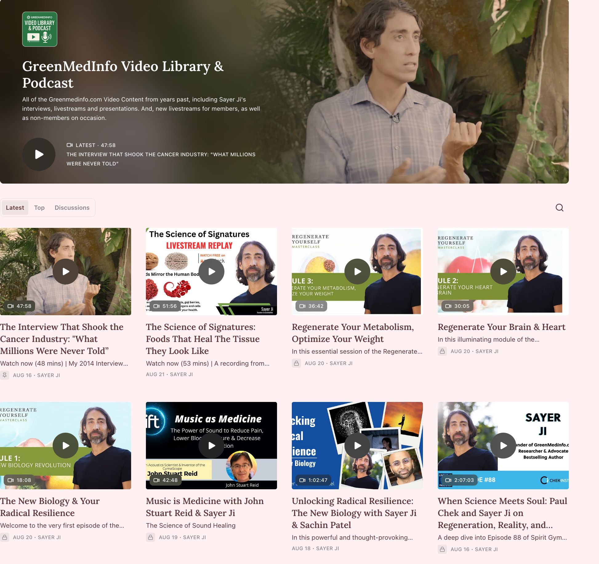 Subscribers also gain access to our private GreenMedInfo video library, featuring years of premium, members-only content. Much of this information was considered so disruptive to the conventional medical and scientific paradigm that attempts were made to censor it—yet it continues to thrive, uncensored and available exclusively to you.