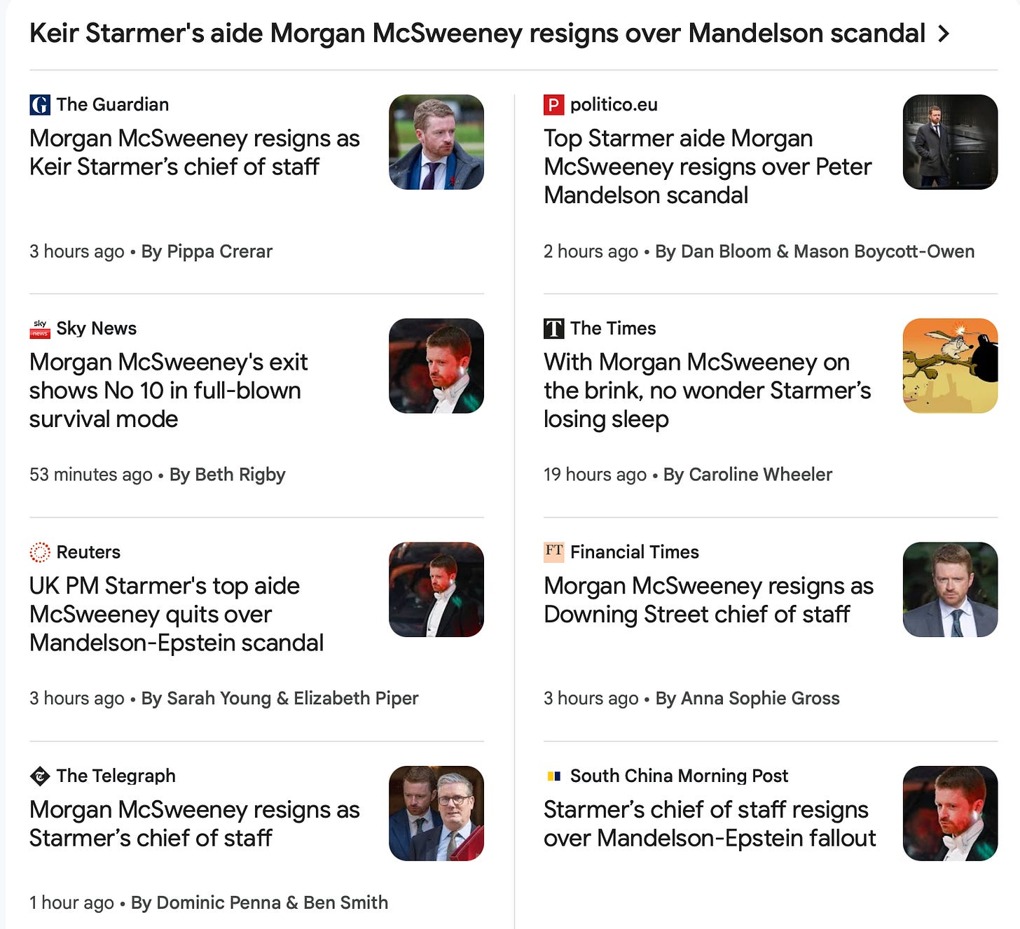 This matters because McSweeney was a protégé of Peter Mandelson — now under criminal investigation — who appears repeatedly in the Epstein record as an active conduit of sensitive government intelligence.