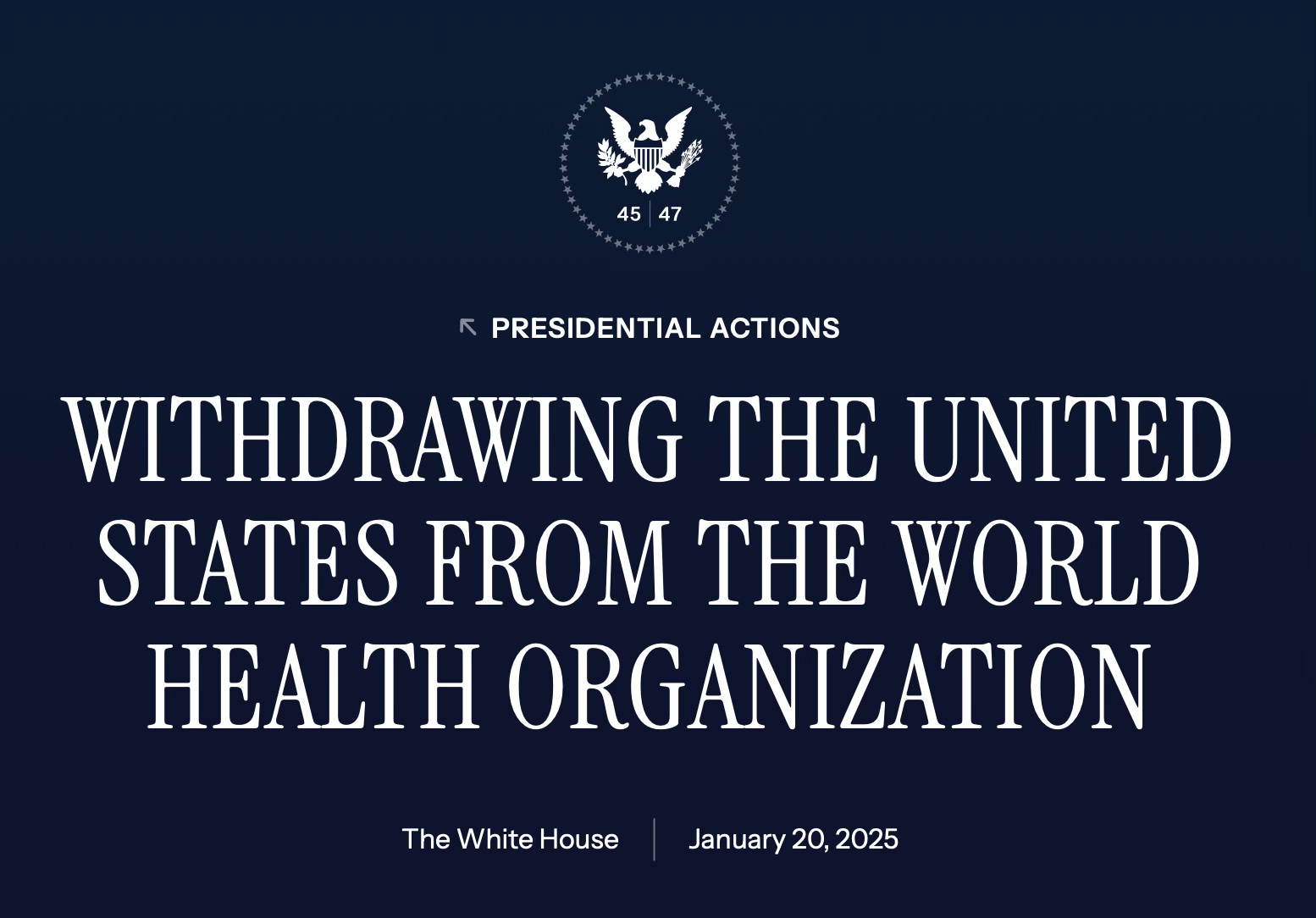 ¹ Withdrawing the United States from the World Health Organization, The White House (Jan. 20, 2025)