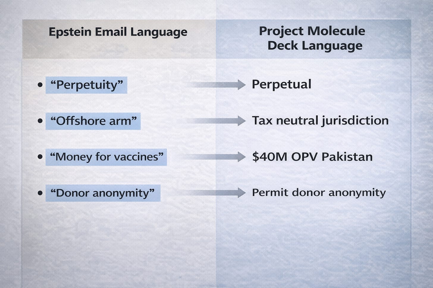 Buried in the Epstein files is a 14-page JPMorgan proposal called Project Molecule—a formal partnership with the Bill & Melinda Gates Foundation to transform pandemic preparedness into a permanently governed, privately controlled, transnational system of vaccine procurement, surveillance, and global health finance—developed within the same institutional ecosystem in which a convicted sex offender operated as a connective broker between Wall Street, global health, and political power.
