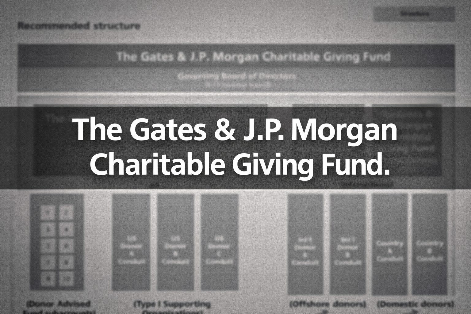 The architecture had a name: A 14-page JPMorgan client proposal — Version 13, dated August 31, 2011 — reveals a transnational charitable-investment vehicle called “The Gates & J.P. Morgan Charitable Giving Fund,” linking the Bill & Melinda Gates Foundation, ultra-high-net-worth global donors, donor-advised funds, offshore charitable structures, and concrete biological interventions.