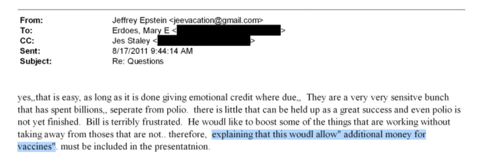 The Epstein files themselves include correspondence showing Bill Gates meeting Pakistan’s Prime Minister at the United Nations in 2013, explicitly discussing polio eradication and the country’s National Emergency Action Plan. Publicly, this is cooperation — and it genuinely is.