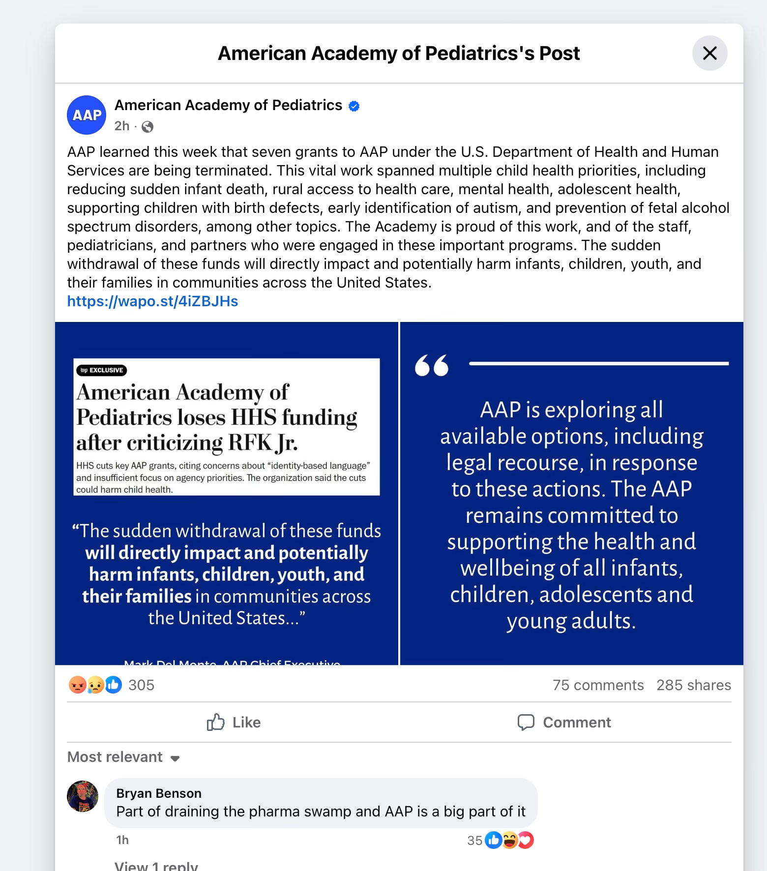 https://publications.aap.org/pediatrics/article/156/Supplement%202/S5/205642/Potential-Conflict-of-Interest-DisclosuresThe Washington Post, American Academy of Pediatrics Loses HHS Funding After Criticizing RFK Jr., including Secretary Kennedy’s public remarks questioning whether AAP recommendations reflect public health interests or industry influence.